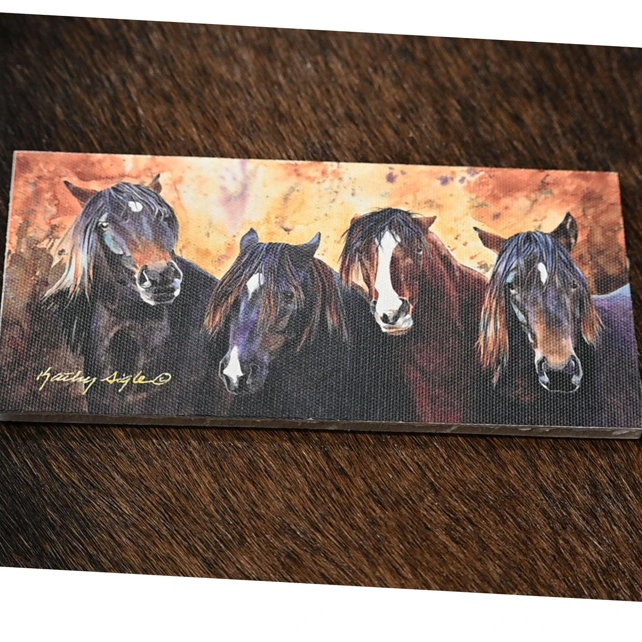 This print is made by an American artist Kathy Sigle. The talented South Dakota artist named this print Cantankerous Bunch.