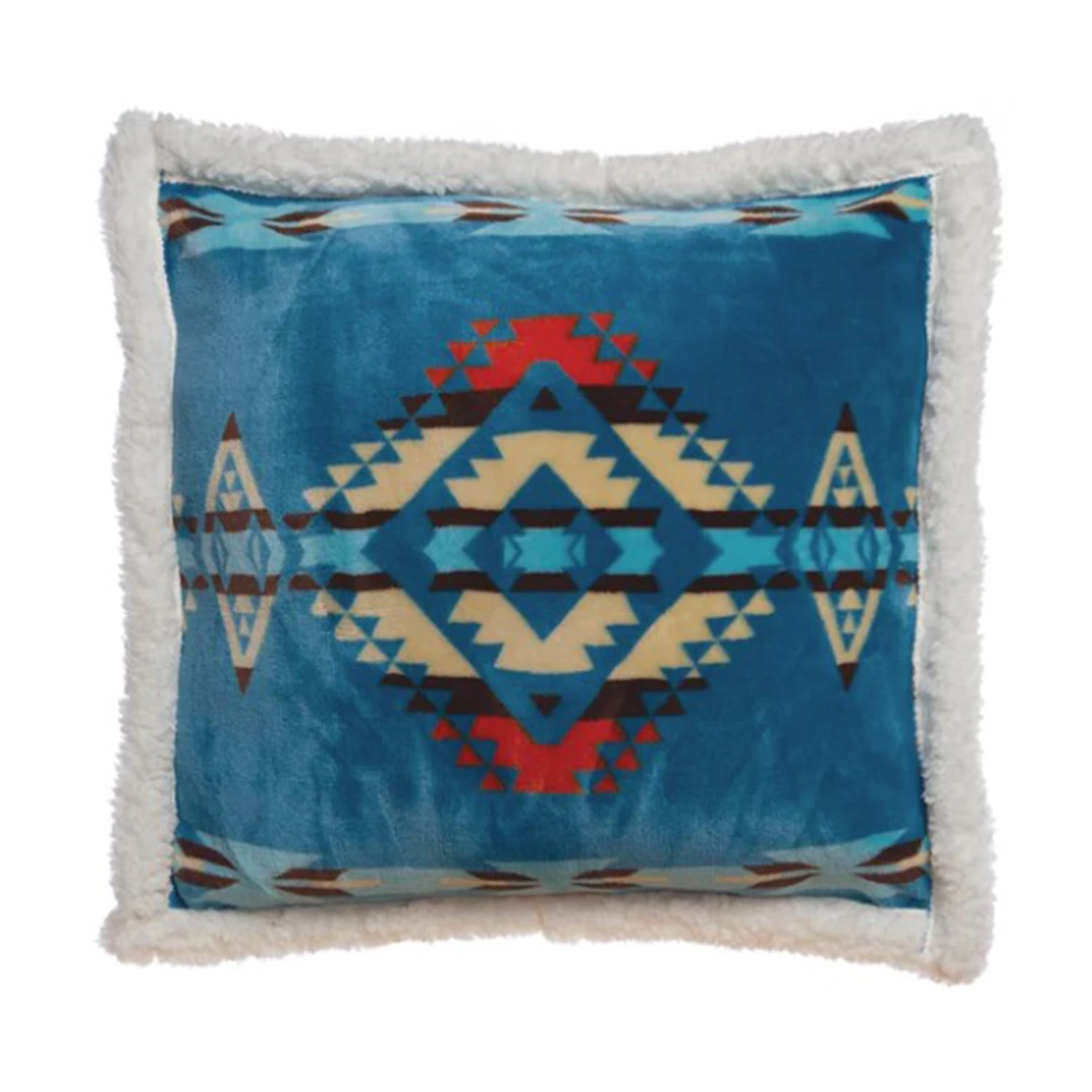 The Carstens Inc. Turquoise Southwest Pillow adds rustic charm with its colorful Western design while offering incredibly soft and cozy sherpa. 100% polyester fabric plush top with sherpa on reverse side. Pillow form included.