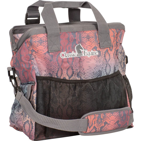This groom tote from classic equine is made of tough durable poly. It is perfect to fit all of your essential grooming supplies plus a water bottle or cell phone.Â