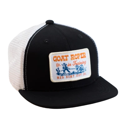 This youth cap is perfect for your little cowhand!!! This black and white youth snapback features Red Dirts new Goat Roper in Training.