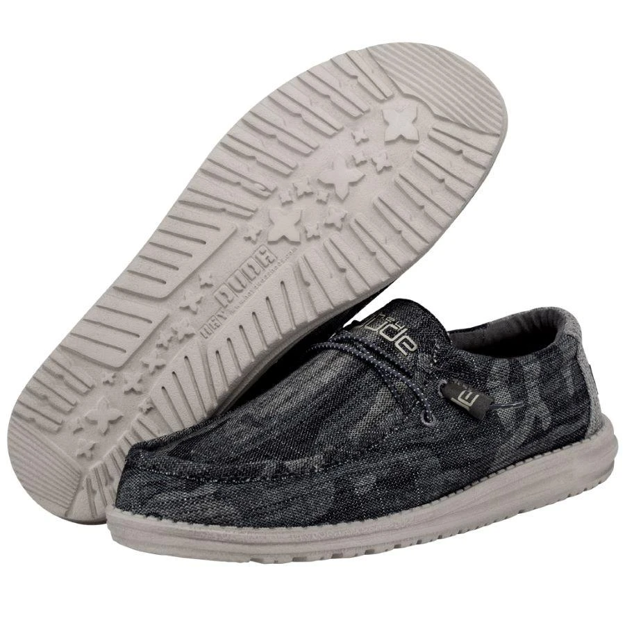 This Hey Dude Wally Camo Tweed is such a fun yet simple and neutral shoe that can complete any outfit. Dress it up or dress it down, the cool black and grey camo print brings such a fun and unique vibe. The unique print is constructed with quality materials like organic cotton and Flex & Fold technology, which is easily the most versatile shoe.