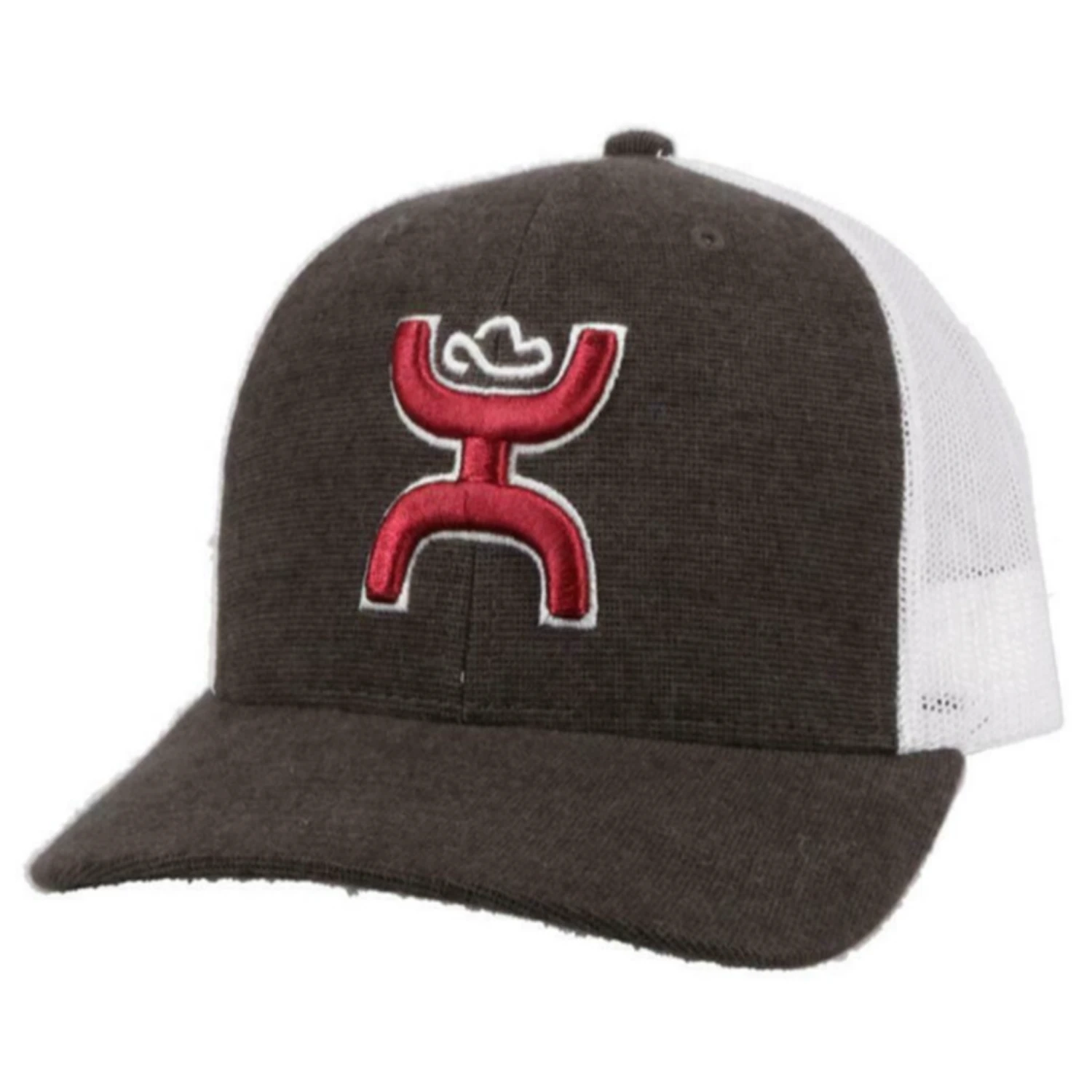 This hooey black and white sterling cap is a 6 panel trucker hat with adjustable snaps.