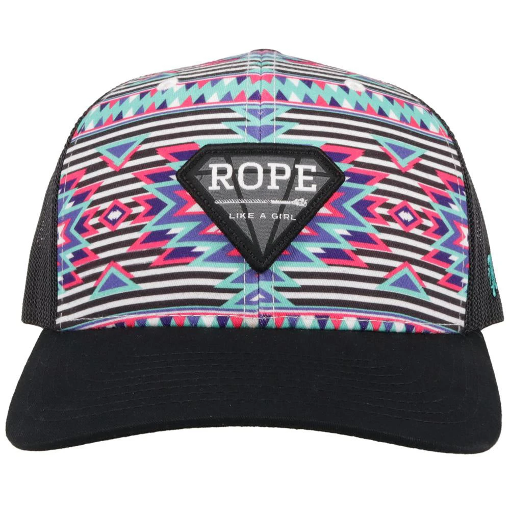 Ladies this is an eye catching cap in a pastel Aztec print. This snapback will fit most and the Rope Like a Girl patch makes a statement all of it’s own.