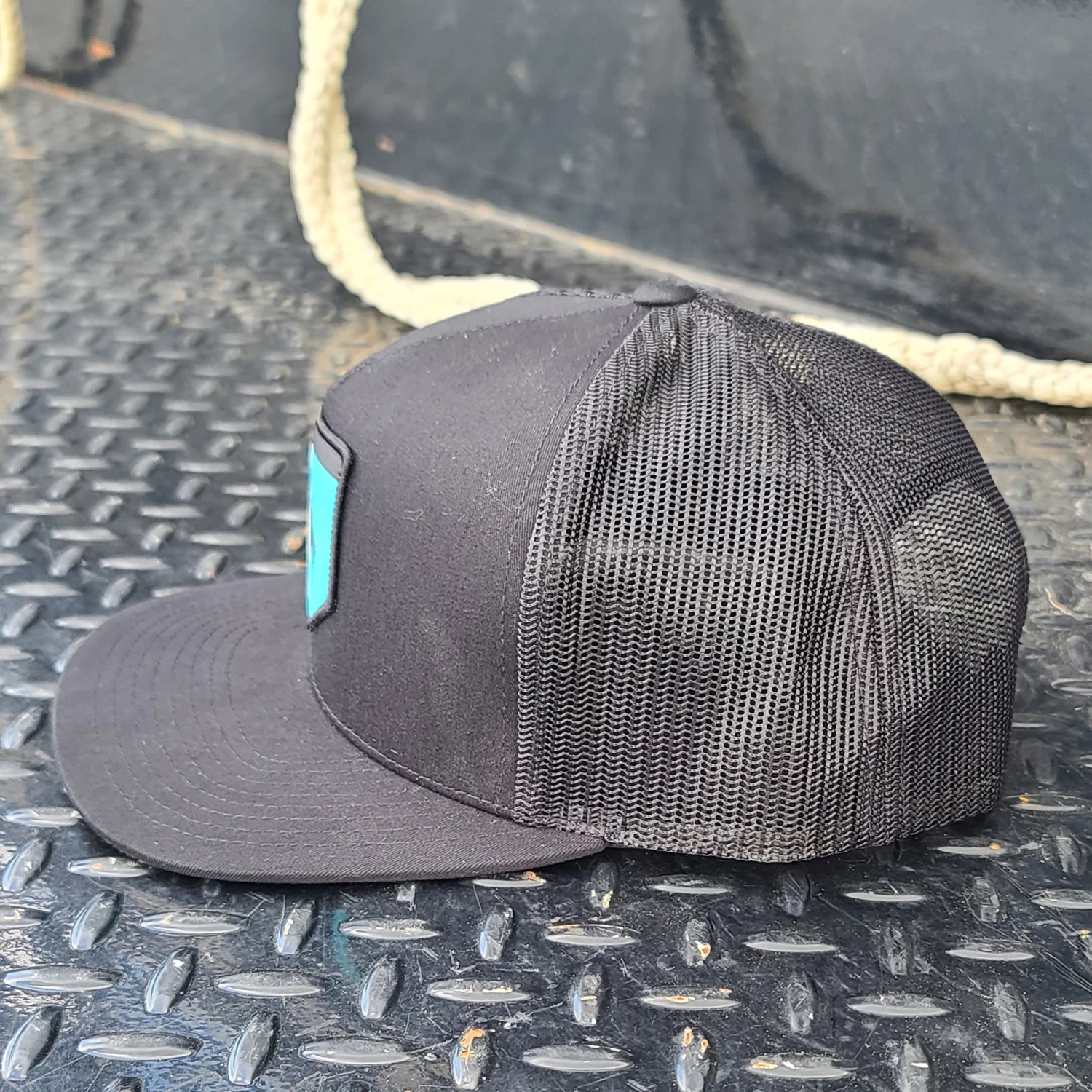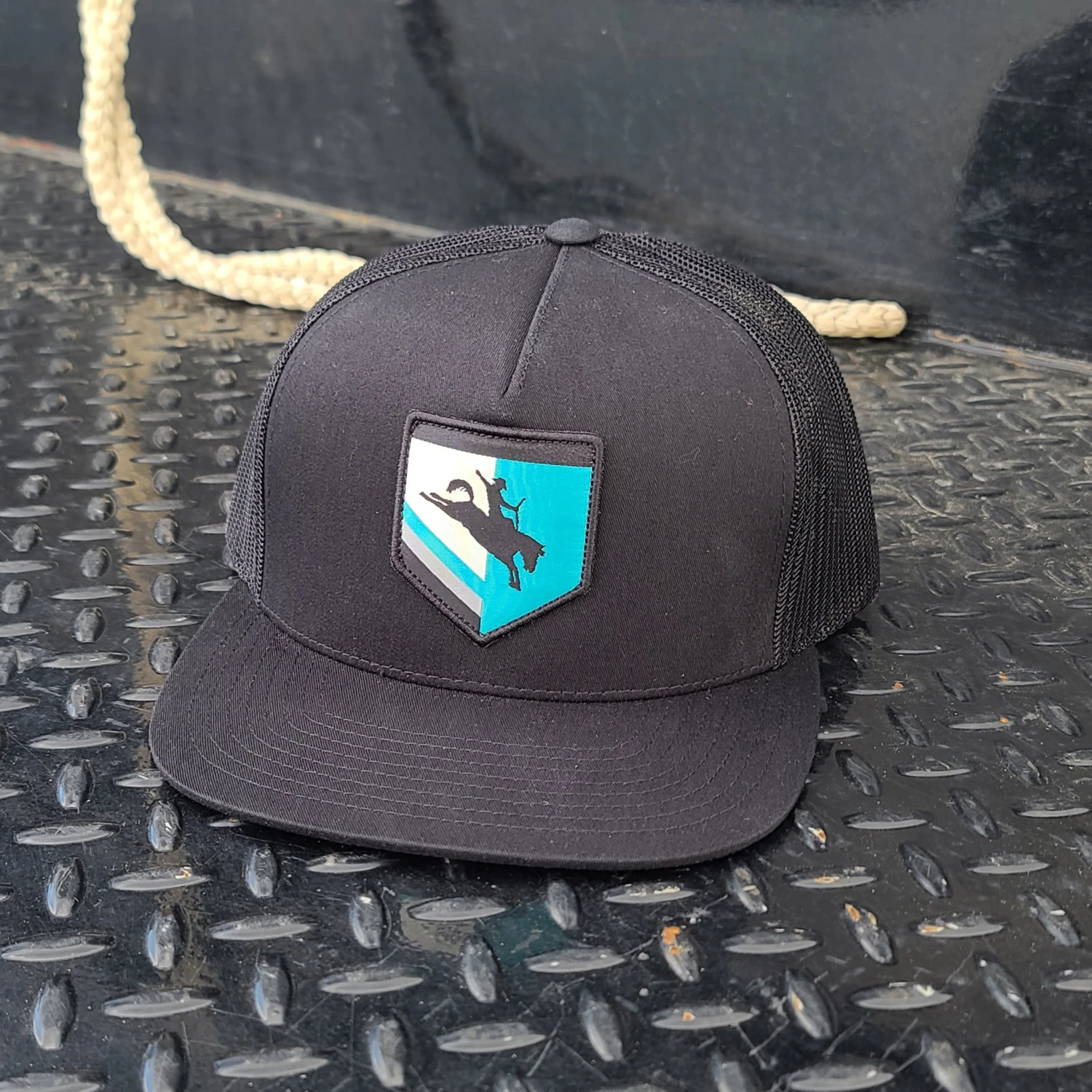 This black and turquoise “Tibbs” cap is adjustable and has a mesh back.Â