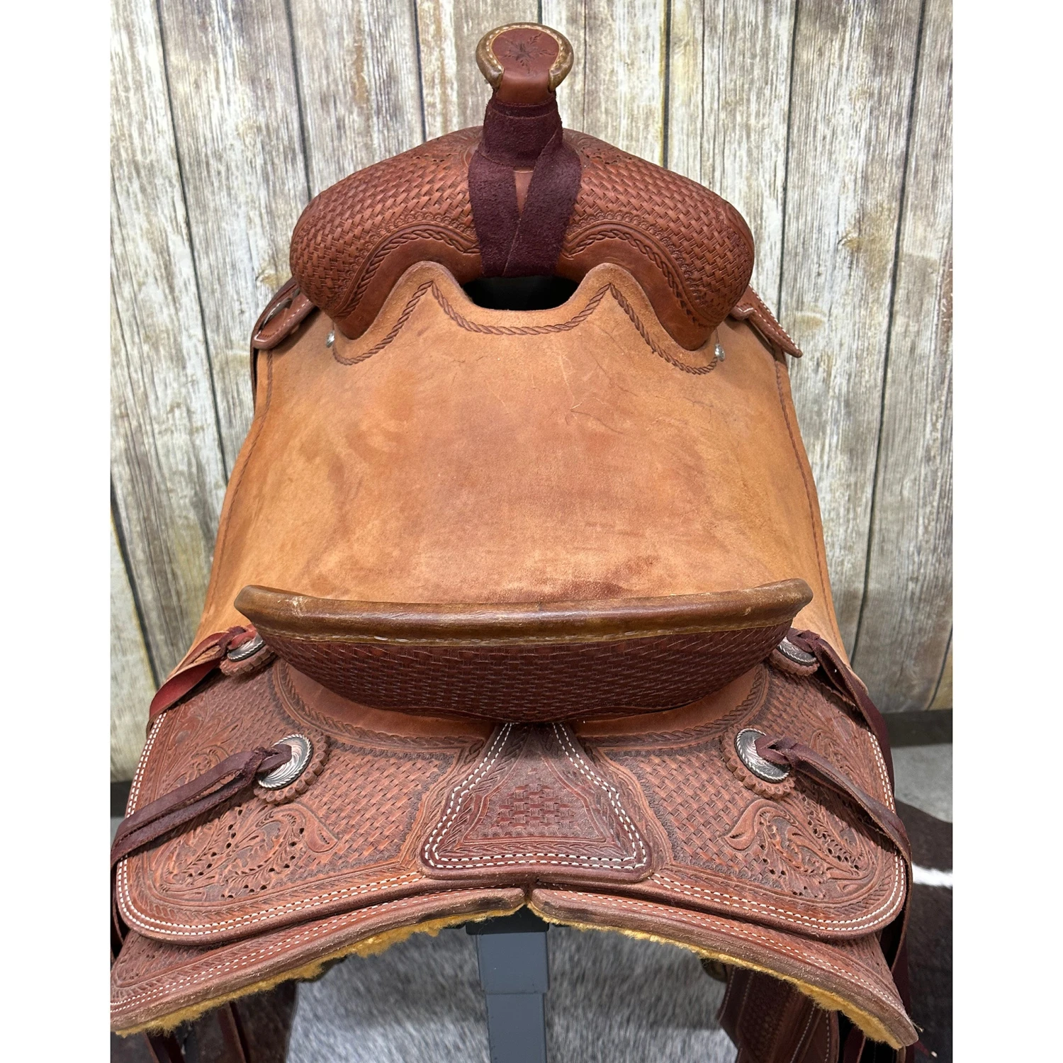 Look at the tooling on this HR Saddlery 16 Inch Will James Signature Roping Saddle. It is gorgeous! Not only does it have floral and basket weave tooling on both skirts it also has a rope boarder, with a star on the horn. This saddle would be a great everyday saddle.