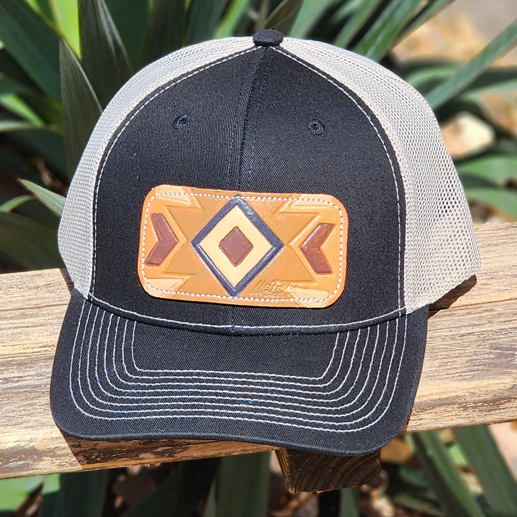 McIntire Saddlery Black Cap with Black & Tan Aztec Leather Patch.