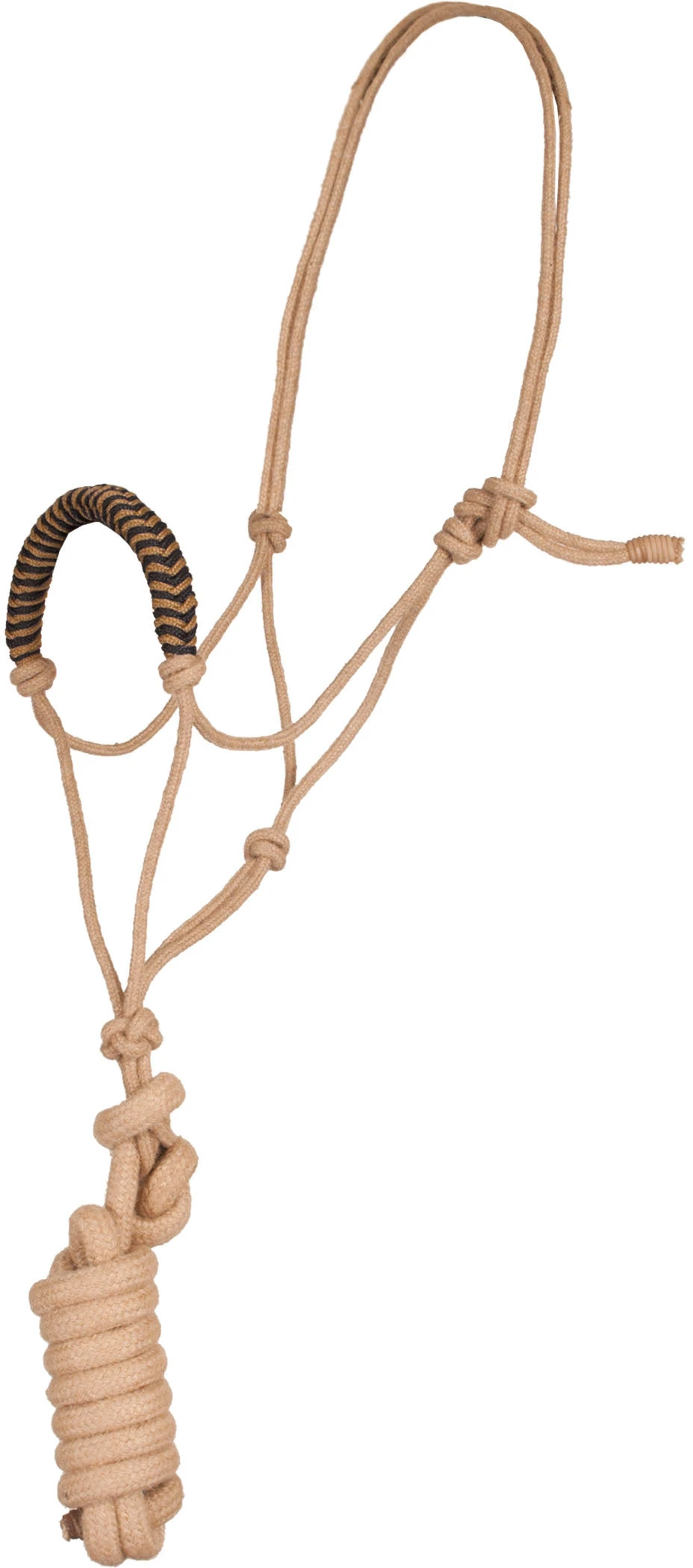 Jute rope halter features a braided color noseband and includes a 9′ detachable lead. Jute is an all-natural and extremely durable fiber.