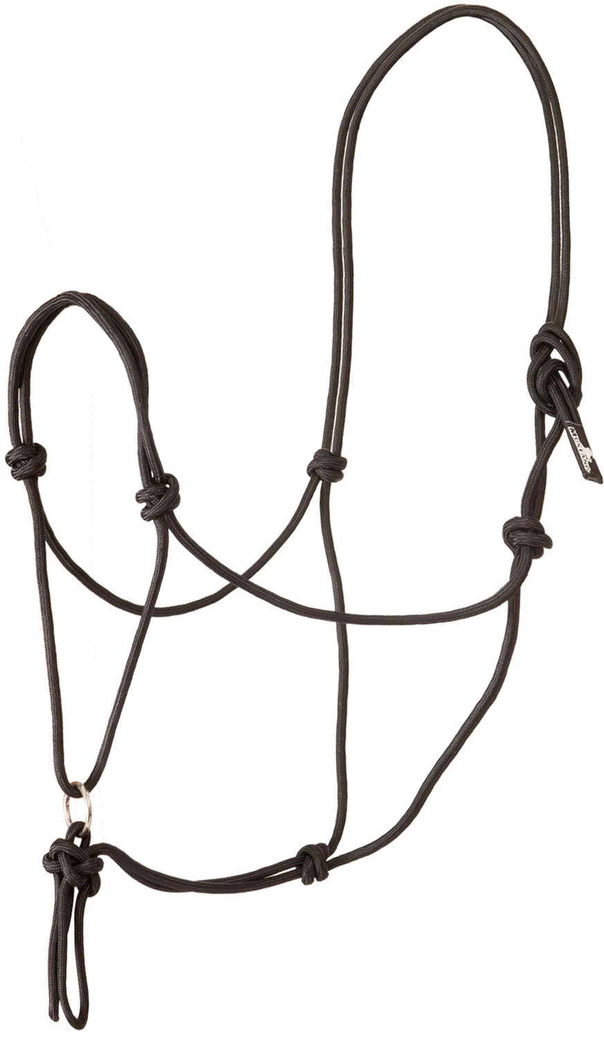 Made from soft, yet very durable braided 1/4″ diameter nylon cord. Halter features an “O” ring at the chin to allow the horse head to freely move during lunging without halter twisting over the nose and eyes. The No-Twist Halter is perfect for training, lunging, or all-around daily halter.