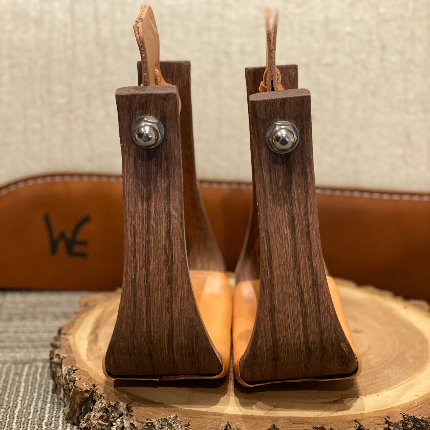 Meet the Duke, aptly named after John Wayne and the best-looking, best-riding, best-built economy stirrup on the market. A sidekick to the Nettles Stirrups Premier Line, it too was designed by cutting horse Hall of Fame trainer and problem-solving guru Ronnie Nettles. Made of five oak laminates from logs milled at the Nettles Stirrups Manufacturing Company, The Duke is a great basic work stirrup. It is graded at five stations during the building process, has rounded inside edges and is finished in a Rustic Cherry stain that blends smartly with today’s saddles. The Duke’s excellent stability and smart style makes it the best value in economy stirrups on the market.