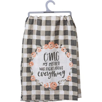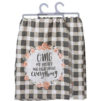 Plaid towel featuring the words ” Omg My Mother Was Right About Everything” This towel would look amazing in anyone’s kitchen!