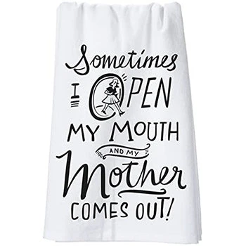 How often have we all had this run through our mind!  “Sometimes I Open My Mouth And My Mother Comes Out!” sentiment with female character, a design that compliments any kitchen . Â