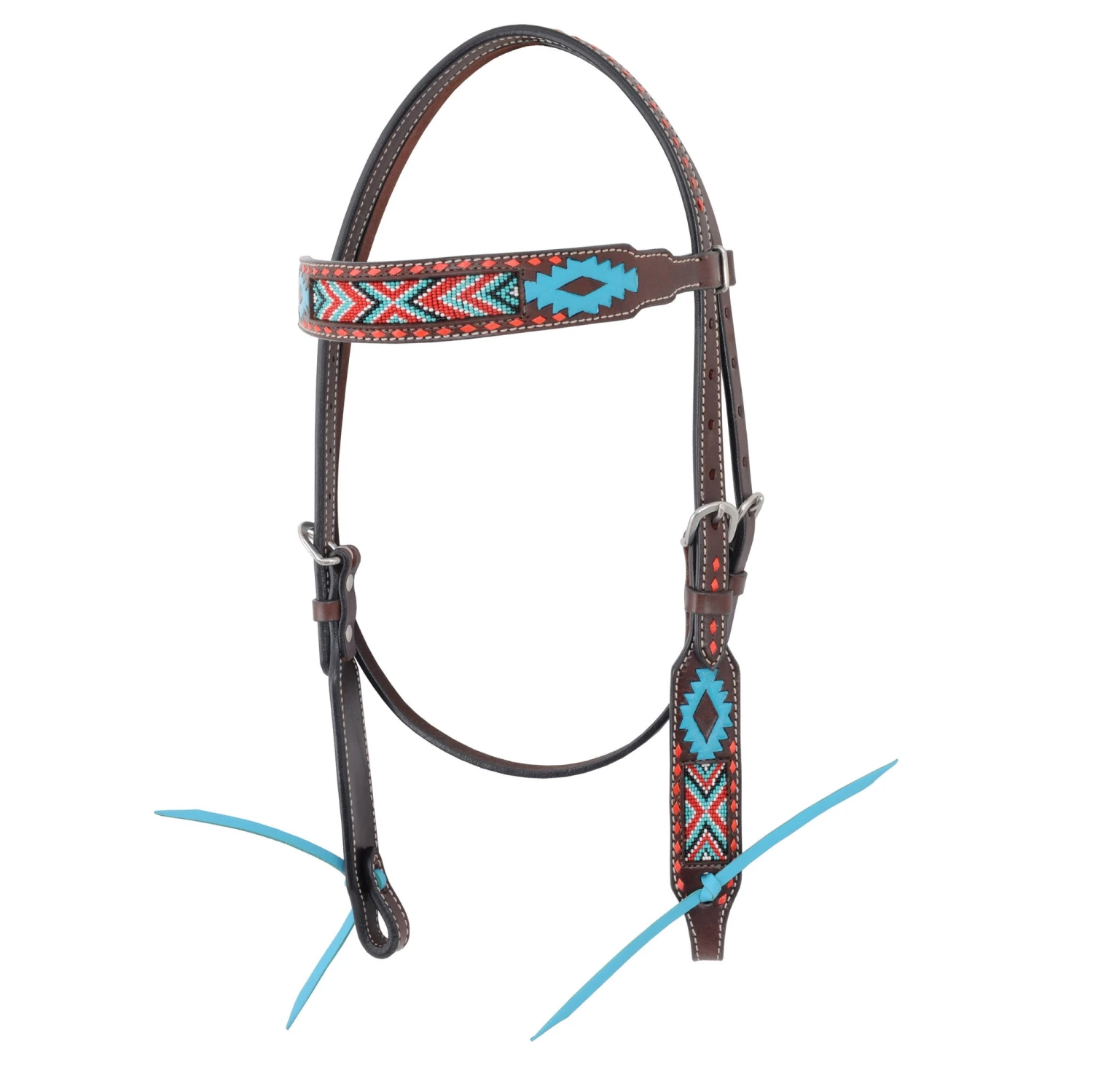 A Beautiful Oxbow Aztec Beaded Browband Headstall.