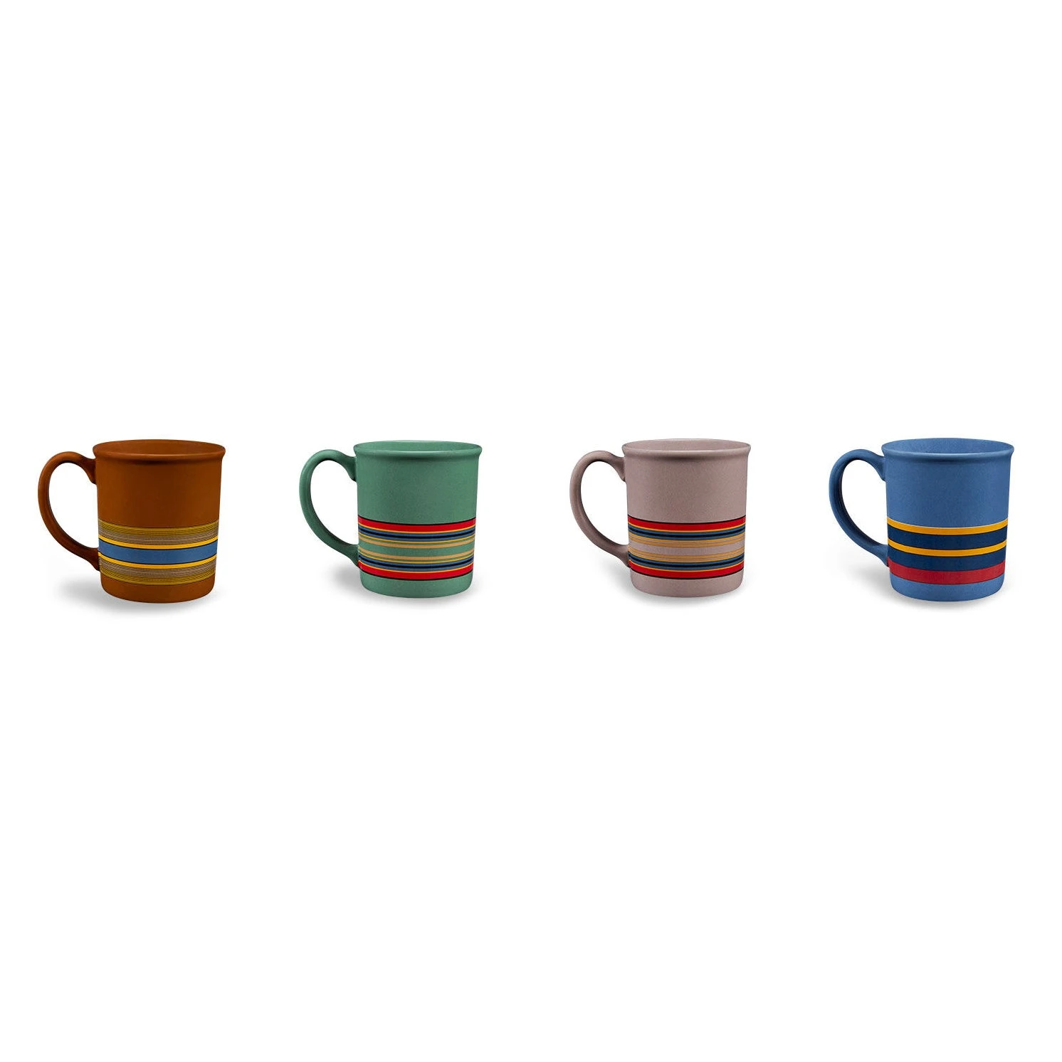 Pendleton Camp Stripe Mug Set. Set of four 12-oz. sturdy ceramic mugs feature stripes inspired by the popular Yakima Camp Blankets. The boxed set includes one mug in each color.