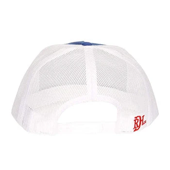 Support your favorite hat company in this red and blue Red Dirt logo cap! Classic 5 panel style snapback cap featuring the “Tag” patch.
