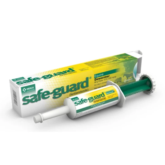 SAFEGAURD works on a variety of parasites such as large and small stronglyes, like migrating larvae, pinworms and roundworms (ascarids). Safegaurd like the name suggests, is safe for foals, pregnant mares, older horses, thin and underweight horses, miniature horses. This 25 gram tube of safeguard has an apple cinnamon flavor making it easier to administer.Â