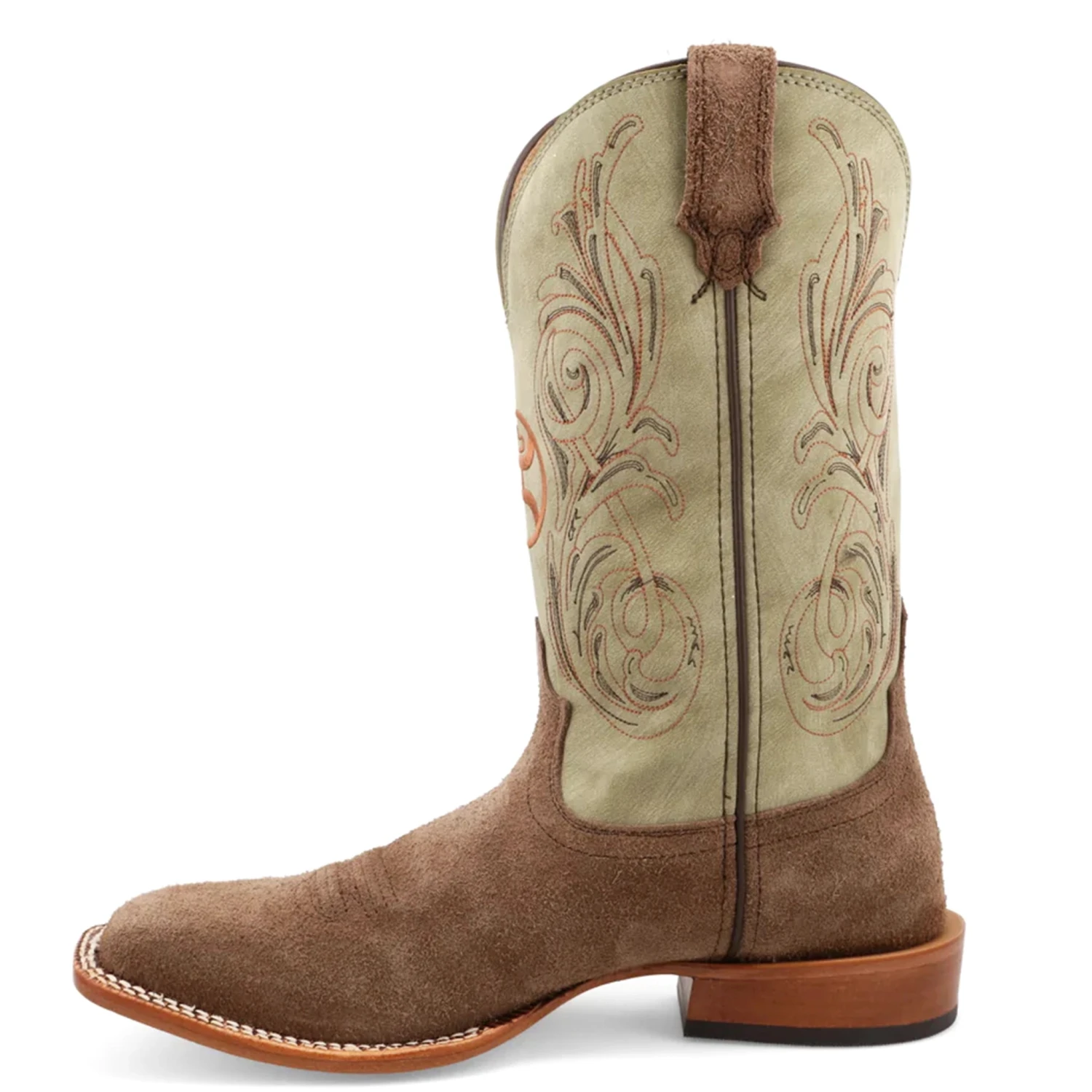 Twisted X Men’s 12″ WS Toe Hooey® Boot showcases the Hooey® brand’s distinctive styling. These boots are crafted with an attractive full-grain roughout leather and leatherTWXâ„¢ shaft, Leather TWX is 80% recycled leather that would otherwise end up in the landfill. Leather lining with taped interior seams. Twisted X® CellSole® comfort technology is an interconnected network of comfort cells that compress and rebound with every step. These Hooey® boots feature a leather outsole and walking heel with a spur shelf.
