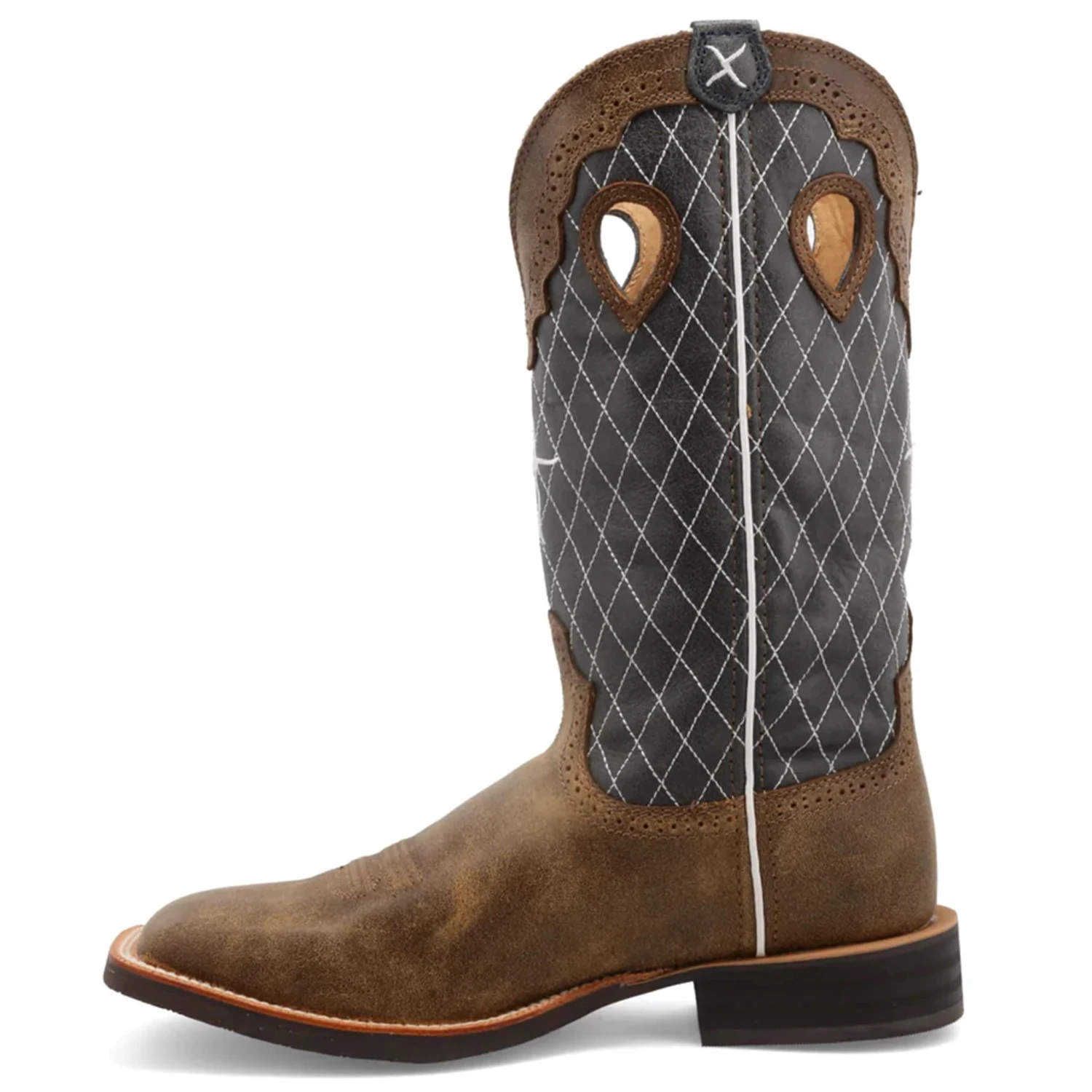 Twisted X Men’s 14″ NWS Toe Ruff Stock Boot offers a timeless look and feel. Handcrafted with working cowboys in mind, this Ruff Stock is built with signature full-grain leather uppers and molded rubber outsoles for improved traction on smooth surfaces. The wide square toe and low heel provide all day comfort.