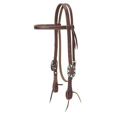 This browband headstall from Weaver Leather features a turquoise Aztec design on the buckles! It is dipped in oil, dressed in butter, and hand rubbed for the perfect chestnut color!